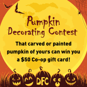 We want to see your pumpkin decorating skills! For a chance to win a $50 Co-op gift card, enter the contest by following these simple steps: